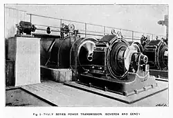 In der Schleife waren Generatoren und Verbraucher in Serie geschaltet. Die dadurch erreichte hohe Spannung in der Übertragungsleitung, hielt die Verluste in Grenzen. Ein Strom von 47 A wurde in der Schleife konstant gehalten, die Spannung variierte mit der Belastung zwischen 450 V im Leerlauf und 6000 V unter Volllast. Bei Schwachlast wurden Generatoren weggeschaltet, indem sie überbrückt wurden.[3]