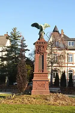 Den südlichen Teil der Anlage prägt das Kriegerdenkmal⊙ für die Kombattanten im Deutsch-Französischen Krieges 1870/71. Das Denkmal besteht aus einer Säule aus roten Mainsandstein, die von einer Kupferkugel mit einem darauf sitzenden Adler bekrönt wird. Die Vorderseite des 1895 eingeweihten Denkmals trägt folgende Widmung: