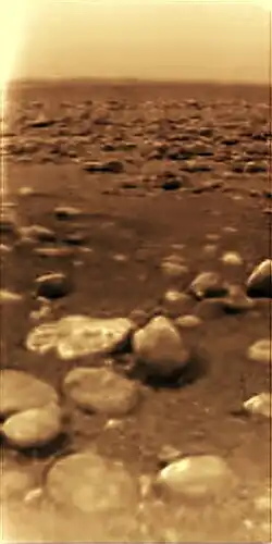 Die Sonde fotografierte helle Hügel mit verzweigten Kanälen (dunkle „Flüsse“), die in eine dunkle Ebene münden. Die abgelagerten „Flusssteine“ weisen auf Erosion, Auswaschung und Flussaktivität hin. Vermutlich bestehen die porösen Kiesel aus Wassereis und eingelagertem Ammoniak. Die Sedimentation könnte durch Regen entstanden sein, erzeugt in der oberen Atmosphäre des Titans durch ultraviolette Strahlung der Sonne. Auf dieser Basis ist es möglich, dass die organischen Verbindungen mit Methanregen die Hügel hinuntergespült und über geologische Zeiträume auf den Ebenen abgelagert werden.[6]