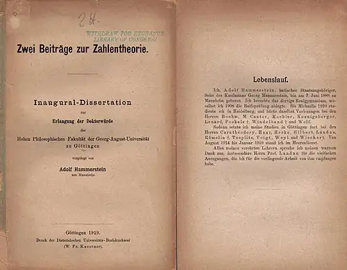 - ↑ Adolf Hammerstein im Mathematics Genealogy Project (englisch) abgerufen am 24. April 2024.