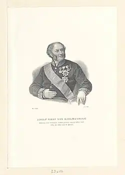 Adolf Graf von Kielmansegg,[1] vollständig August Friedrich Adolph Graf von Kielmansegge [2] (* 28. Juni 1796 in Hannover; † 8. Juni 1866 auf Gut Seestermühe) war ein hannoverscher Offizier und Diplomat. Er war der letzte hannoversche Gesandte in London.