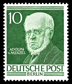 - Deutsche Post der DDR, 1965: Porträt, Briefmarke zum 150. Geburtstag von Menzel