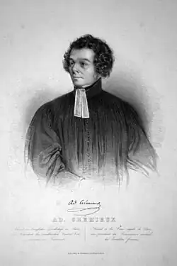 Daneben setzt er sich energisch für die Belange der Juden innerhalb und außerhalb seiner Heimat ein. Zu nennen ist hier zunächst sein Engagement im Consistoire central israélite, dem Dachverband des französischen Judentums. 1843[2] wurde er zu dessen Präsidenten gewählt. Diese Funktion musste er jedoch zwei Jahre später aufgeben, nachdem seine Frau und seine Kinder zum römisch-katholischen[2] Glauben übergetreten waren. Er gehörte mit Benedict und Achille Fould, Max-Théodore Cerfberr de Wissembourg und Alfred Naquet[2] zu den ersten ungetauften jüdischen Abgeordneten in Frankreich nach 1832.