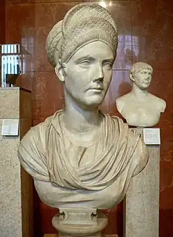 Die Rolle der Frauen des Kaiserhauses als zentrales Element dynastischer Konstruktion wird neuerdings speziell von Karl Strobel betont.[10] Hadrian setzte in dieser Hinsicht besondere Akzente, indem er seine Schwiegermutter Matidia, die Nichte Trajans, nicht nur divinisierte, sondern für sie auf dem Marsfeld zusätzlich einen monumentalen Tempel mit 17 Meter hoher Säulenfront errichtete.