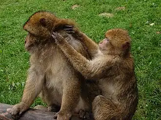 ![]() Berberaffen bei der sozialen Fellpflege | |||