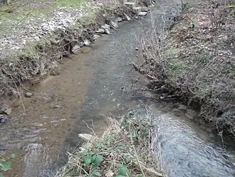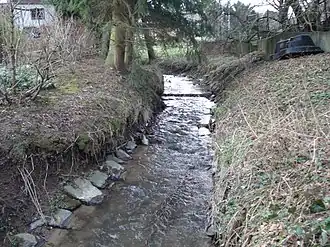 Die Mündung des Afferbaches (rechts) in den Hösbach (links) | ||