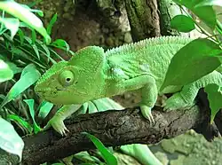 Weiter westlich in Benin rief Gott am Anfang alle Tiere zusammen und nur das Chamäleon kam zu spät. Es rechtfertigte sich, als es von allen Tieren beschimpft wurde, es habe nur vier Hände, aber keine Beine. Nach dieser Entschuldigung erklärte Gott, dass das Chamäleon von keinem anderen Tier gefressen werden dürfe. Zufrieden machte sich das Chamäleon davon und sagte: „Ich ging langsam. Ich habe so den Tod vermieden.“ Das ist die Erklärung, warum gerade das Chamäleon als unsterbliches Tier die Botschaft vom Leben überbringt.[hb 13]