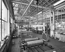 Im späten 16. Jahrhundert brachten niederländische Händler der Ostindien-Kompagnie die javanesische Textilfärbetechnik Batik nach Europa. Niederländische Textilfabrikanten wie Jean Baptiste Theodore Prévinaire[8][9] und Pieter Fentener van Vlissingen[10] (heute Vlisco) hatten dadurch spätestens ab den 1850er Jahren Zugriff auf Batiken. Prévinaire wandelte 1852 die Perrotine (eine Textildruckmaschine, die von dem Franzosen Louis-Jerôme Perrot 1835 erfunden worden war) zur Wachsdruckmaschine um und nannte sie La Javanaise. Der Druckvorgang der Perrotine basierte auf der Technik von Holzdruckstempeln, wie sie auch in der manuellen Fertigung verwendet wurden.[3] Die Hersteller kopierten die Muster aus Java und stellten sie nun mithilfe der neuen Maschinen industriell her, um die gemusterten Baumwollstoffe in der Kolonie Niederländisch-Indien zu vermarkten. Dieser Versuch scheiterte, da die Indonesier ihre eigene traditionelle Handarbeit dem Massenprodukt vorzogen.[8][1]
