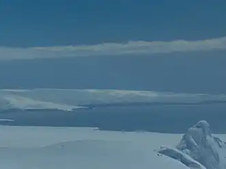 ![]() Blick vom Catalunyan Saddle auf den Agüero Point (links der Mitte), Hintergrund: Johannes-Paul-II.-Halbinsel, Vordergrund: Burdick Ridge | ||