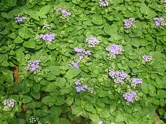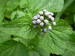 - ↑ a b Ageratum im Germplasm Resources Information Network (GRIN), USDA, ARS, National Genetic Resources Program. National Germplasm Resources Laboratory, Beltsville, Maryland.
