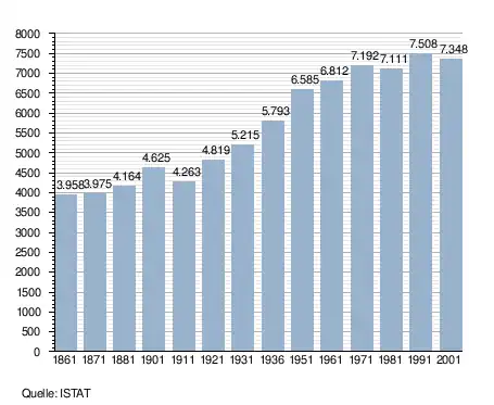 - ↑ Bilancio demografico e popolazione residente per sesso al 31 dicembre 2024. ISTAT. (Bevölkerungsstatistiken des Istituto Nazionale di Statistica, Stand 31. Dezember 2024).