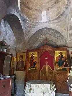 Es handelt sich bei dem kleinen Saalbau um eine kleine Kuppelkirche auf einem annähernd quadratischen Grundriss mit Halbkreisapsis und mit zwei rechteckigen Türöffnungen mit gemeißelten profilierten Rahmen. Unterhalb der zentralen Kuppel hat die Kirche einen niedrigen quadratischen Sockel, der den zylinderförmigen Aufbau der kleinen Kuppel trägt. Im Inneren sind in der Nord- und Südwand Spitzbögen ausgebildet, die die Wand als Schmuck gliedern, aber auch zusammen mit den flachen Gewölben im Osten und Westen die vier Zwickel bilden, die die Kuppel tragen.[1]