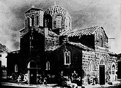 Die Kirche wurde laut einer Inschrift an der Westseite 1049 oder 1065 gegründet[2] und im 12. Jahrhundert völlig neu gebaut. Als Erbauer wird der byzantinische Beamte (Spatharokandidatos) Nikolaos Kalomalos (gr. Νικόλαος Καλόμαλος) genannt. 1821 wurde die Kirche während der griechischen Revolution schwer beschädigt, 1840 jedoch wieder restauriert.