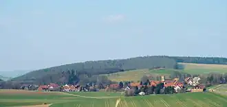 ![]() Blick von Süden auf Ahlshausen, dahinter der Rott und der Hainberg