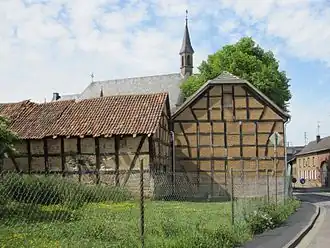 Ein bedeutender Adelshof, zu dem auch eine Ölmühle gehörte, lag am nördlichen Ende des Dorfes. Mit ihm wurde 1410 Gerhard Voss von Lechenich von Erzbischof Friedrich von Saarwerden belehnt.[18] Der Hof kam dann in Erbfolge an die Familie Haes von Konradsheim und von ihr an die Familie von Eyll. Degenhard von Eyll verkaufte den Hof 1641 an das Augustinerinnenkloster St. Maximin in Köln,[19] nach dem der Hof seitdem Maximinenhof benannt wurde. Der Maximinenhof blieb bis zur Säkularisation mehrere Generationen an die Familie Schick verpachtet.[20]