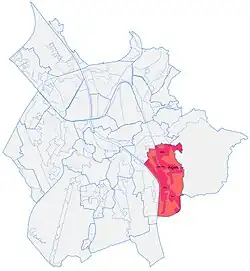 Nördlich von Aigen liegt der Stadtteil Parsch, wobei die Nesselthalergasse und der Grünraum um das alte Bauerngehöft Jägergut und die Fischbachvilla westlich der Bahnlinie die Grenze zu Parsch bilden, und östlich derselben der Preuschenpark um den Abfalterhof und die Maria-Cebotari-Straße. Im Westen bildet die Salzach, im Osten der Gaisberg eine natürliche Grenze.