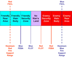 Das AirLand-Battle-Konzept findet auf Korpsebene statt. Die einzelnen Gefechtsstreifen der Divisionen sind in „Rear Battle Area“ (rückwärtiges Gebiet), „Close Battle Area“ (Brigade-/Bataillonsgefechtsstreifen, dem eigentlichen Kampfgebiet zwischen eigenen und feindlichen Truppen), „Deep Battle Area“ (vorgelagerte Zone, noch vor dem VRV), der Sicherungslinie und der „Forward Line of Own Troops (FLOT)“ und der „Strategic Area“ (Hinterland des feindlichen Territoriums) unterteilt.[3] Bis auf die Strategic Area liegen die drei Zonen im Verantwortungsbereich von Heer und United States Air Force (USAF). Unter der Abriegelungsstrategie versteht man beim ALB vorzeitige Schläge („Schlacht in der Tiefe“) gegen Infrastruktur und Nachschub des Gegners in der zweiten Staffel (englisch echelon), noch bevor der eigentliche Kampf mit der ersten Staffel begonnen hat. Diese Schläge können durch Kurz- und Mittelstreckenraketen (z. B. Pershing II oder Marschflugkörper) – entweder mit konventionellen oder nuklearen Gefechtsköpfen – oder durch die Luftwaffe ausgeführt werden. Dabei baute das Konzept v. a. auf die Druck- und Strahlenwirkung atomarer Sprengmittel, welche die feindlichen Kräfte vernichten sollten. Der Einsatz nuklearer Waffen hätte jedoch die Freigabe des US-Präsidenten möglichst noch vor Beginn der Kampfhandlungen erfordert. Die zweite Staffel des WAPA hatte die Aufgabe, vorne aufgeriebene Kampftruppen nach Bedarf vollständig zu ersetzen und spielte in deren Planungen eine große Rolle. Die ALB-Offensive richtet sich vorrangig auf Schlüsselobjekte des Gegners, die sich bis zu 300 km tief in deren Territorium befinden. Unter Hochwertzielen für Luftangriffe werden vor allem Befehls- und Kommandostellen (Gefechtsstände), Nachschubeinrichtungen (z. B. Treibstoffversorgung) und atomare Abschussvorrichtungen verstanden. Durch gezielte Schläge gegen die zweite Staffel und ihre Einrichtungen werden Truppenmassierungen des Gegners unterbunden, die gegnerische Offensive droht zusammenzubrechen, und außerdem wird dadurch die operative Voraussetzung geschaffen, um eigene Gegenangriffe am Boden auszuführen.