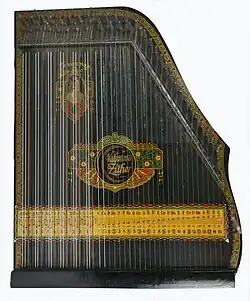 - solche mit ganz oder teilweise chromatischen, vom tiefsten zum höchsten Ton angeordneten Saiten. Diese Autoharp genannten Instrumente besitzen einen Mechanismus um für den gewünschten Akkord nicht benötigte Saiten zu dämpfen