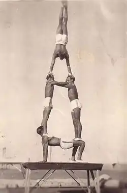 Von 1460 bis 1563 lebte in Marokko der Gründer einer spirituellen Bruderschaft, die sich nach seinem Namen benannte: Die Söhne des Sidi Ahmed ou Moussa (Oulad Sidi Ahmed ou Moussa). Unter den Auflagen ständiger Wanderschaft in Gruppen und dem Verzicht auf Bettelei entwickelte die Bruderschaft ihre besondere Art, gegen Lebensmittel oder Geldspenden mit der Hilfe von Tanz, Gesang und Akrobatik Segen (baraka) zu übermitteln. Aus dieser Tradition entwickelten sich im 19. Jahrhundert professionelle Zirkusakrobaten mit Engagements in Europa (Zirkus Renz 1852, Zirkus Busch 1902) und Übersee. Um 1920 herum waren alleine 25 marokkanische Artistentruppen, sämtlich Berber aus der Region Tazerwalt im Süden Marokkos, in Deutschland beschäftigt. Während des rassischen Säuberungswahns der Nationalsozialisten verließen diese Gruppen Deutschland. Mittlerweile sind diese Artisten wieder in Europa und USA unterwegs. Auswirkungen auf die Welt der Akrobaten hatten sie unter anderem insoweit, als einige ihrer Übungen (Salti & Überschläge) unter dem Begriff „Araber“ bekannt sind. In marokkanischen Städten (v. a. in Marrakesch) können noch heute – meist von volkstümlichen Musikinstrumenten wie T'bol, Qarqaba oder Gimbri begleitete – Akrobatik-Aufführungen auf öffentlichen Plätzen besucht werden.[2]