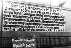 Ab 1952 wurde die Aktivistenbewegung auch auf den Handel ausgedehnt. Sie zielte auf höhere Produktivität und auf einen höheren Umsatz, diente der Verringerung der beträchtlichen Versorgungsmängel. Vorreiter war die 1948 gegründete Handelsorganisation, doch die Konsumgenossenschaften schlossen sich rasch an. Als erstes Vorbild diente die junge Moskauer Verkäuferin Sina Rybakowa, die für den sozialistischen Wettbewerb einzelner Geschäfte, verstärkte Fortbildung und politisch-gesellschaftliches Engagement eintrat. Nach dem Volksaufstand vom 17. Juni 1953 wurden vermehrt DDR-Aktivistinnen hervorgehoben, so etwa die Leipziger Verkaufsstellenleiterin Gretel Heinicke. Sie propagierte die Kochtopfmethode, die Kunden ein tägliches Rezept und die dazu erforderlichen Lebensmittel vorstellte.[2] Der deutlich den Plan übererfüllenden Weberin Frida Hockauf schrieb die SED-Propaganda im Dezember 1953 den Spruch zu: „So wie wir heute arbeiten, werden wir morgen leben.“