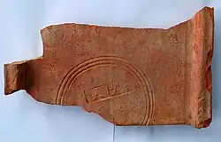 - Schild war die Parma equestris, die flach, oval und deutlich kleiner als das Scutum war. Sie maß ca. 115/60 cm und war 5 kg schwer. Sie wurde aus Sperrholz gefertigt und die Flächen wurden mit Leinen oder Rindsleder beklebt. Der Rand war mit Bronze beschlagen. In der Mitte hatte der Schild ein ovales Loch, durch das der Griff lief. Nach außen wurde die Hand durch den halbkugelig geformten Schildbuckel aus Eisen geschützt. Die Außenfläche wurde bemalt. Die Bemalung wurde normalerweise zum Schutz mit Ziegenleder verdeckt. Zu Paraden oder Appellen wurde die Bemalung gezeigt. Außerdem besaß der Schild Tragegurte, mit denen der Schild umgehängt oder am Sattel des Pferdes befestigt werden konnte.