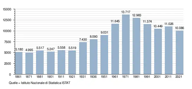 - ↑ Bilancio demografico e popolazione residente per sesso al 31 dicembre 2024. ISTAT. (Bevölkerungsstatistiken des Istituto Nazionale di Statistica, Stand 31. Dezember 2024).