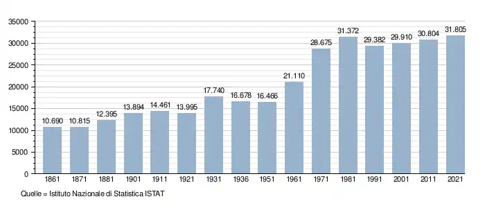 - ↑ Bilancio demografico e popolazione residente per sesso al 31 dicembre 2024. ISTAT. (Bevölkerungsstatistiken des Istituto Nazionale di Statistica, Stand 31. Dezember 2024).