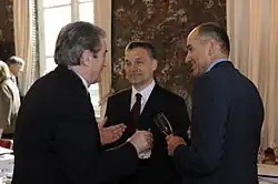 - ↑ a b Berisha-Kover: PS, jo bojkot. Top Channel, 20. März 2012, abgerufen am 20. März 2012 (albanisch, Albaniens Ministerpräsident Sali Berisha und Ungarns Parlamentspräsident László Kövér treffen sich in Budapest anlässlich des 90-jährigen Jubiläums der albanisch-ungarischen Beziehungen.).