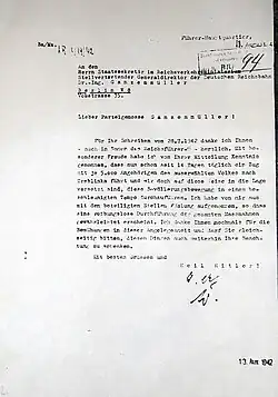 - ↑ Helmut Heiber: Akten der Partei-Kanzlei der NSDAP: Rekonstruktion eines verlorengegangenen Bestandes: Regesten. Oldenbourg Verlag, 1983, S. 806 (online aufgerufen am 28. Januar 2013).