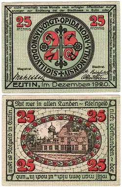 - ↑ Gutschein der Stadt Eutin über 100 Pfennig zur Einlösung im Dezember 1920