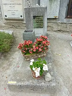 Alberto Giacomettis Grab auf dem Friedhof bei der Kirche San Giorgio, Borgonovo