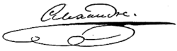Alexander I. Pawlowitsch Romanow (russisch Александр I Павлович; * 12.jul. / 23. Dezember 1777greg. in Sankt Petersburg; † 19. Novemberjul. / 1. Dezember 1825greg. in Taganrog) war Kaiser[1] von Russland (1801–1825), König von Polen (1815–1825), erster russischer Großfürst von Finnland (1809–1825)[2] aus dem Hause Romanow-Holstein-Gottorp und von 1801 bis 1807 sowie von 1813 bis 1818 Herr von Jever.
