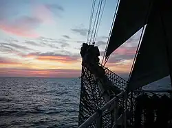 | Besatzung | 23 Stammbesatzung (1 Kapitän, 3 Steuerleute, 1 Schiffsingenieur, 1 Maschinist, 1 Elektriker, 1 Arzt, 1 Bootsmann, 3 Toppsmatrosen, 6 Matrosen, 3 Leichtmatrosen, 2 Köche) und bis zu 36 zahlende Mitsegler |