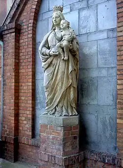 - Marien-Skulptur, 1854 vom Bildhauer J. Janda in Sandstein gehauen, steht an der Kolonnade an der südlichen Innenmauer.