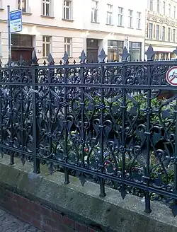 Der südöstliche Vorgartenbereich in der Großen Hamburger Straße ist mit einem restaurierten Original-schmiedeeisernen Geländer eingefasst.