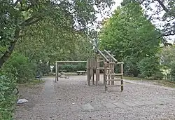 Im westlichen Teil befindet sich, von Bäumen beschattet, ein Kinderspielplatz mit Klettergerüst, Tischtennisplatte und Schaukel sowie Sitzbänken.[3]