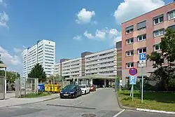 - Nummern 3/4: Laborgebäude des Instituts für vergleichende Pathologie. Nach Vorlage durch den Architekten Hans Karl in den Jahren 1957–1960 im Auftrag der Akademie der Wissenschaften der DDR gebaut.[2]