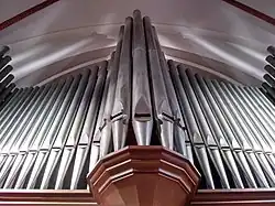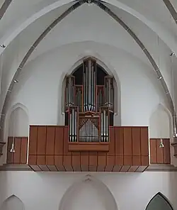 III/P | 47 | 1963 Vorgängerorgel verbrannt; 2006 Austausch zweier Register und Einbau eines Untersatz 32′ durch Bartelt Immer; heute III/P/48, Schwesterinstrument zur Orgel der Lutherkirche am Heidt in Wuppertal[12] |