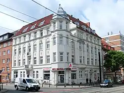 Eines der ersten Stahlbetongebäude Mecklenburgs wurde 1911 Am Strom in Warnemünde errichtet. Die Pläne stammten aus dem Büro Krause & Korff. Das mit einem Turm geschmückte Haus wurde ab 1920 unter dem Namen „Hotel Reichshof“ betrieben. Bei einem Bombenangriff 1942, der wahrscheinlich den Arado-Flugzeugwerken gegolten hatte, büßte das Haus den Turm und seinen ursprünglichen Dachstuhl ein.[8]