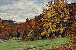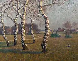 - Niederrheinische Landschaft mit Blick auf ein Dorf, 1916