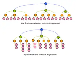 Bei diesem Layoutansatz ist eine Richtung (z. B. von oben nach unten) vorgegeben, in der sich der Graph ausbreitet. Alle Knoten einer Äquivalenzklasse liegen auf derselben Ebene. Die konkrete Ausprägung des Layouts wird gekennzeichnet durch die Entwicklungsrichtung (horizontal oder vertikal) je Äquivalenzebene.