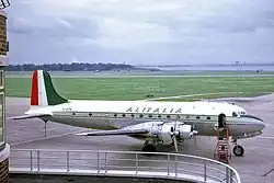 Auf die italienisch-amerikanische Gründung der Linee Aeree Italiane folgte am 16. September 1946 die Gründung der italienisch-britischen Aerolinee Italiane Internazionali, kurz Alitalia.[10] British European Airways hielt 40 Prozent des Startkapitals, das italienische Regierungsinstitut IRI 47,5 Prozent, die restlichen 12,5 Prozent gingen an private Investoren. Am 5. Mai 1947 nahm Alitalia mit einer Fiat G.12 auf der Strecke Turin–Rom–Catania den Flugbetrieb auf. Am 6. Juli 1947 führte eine Savoia-Marchetti SM.95 den ersten internationalen Flug der Alitalia von Rom-Ciampino nach Oslo durch. Am 26. Mai 1948 erfolgte mit einer Avro Lancastrian der erste Transatlantikflug von Mailand über Rom, Dakar, Natal, Rio de Janeiro und São Paulo nach Buenos Aires. In den folgenden Jahren setzte Alitalia auch Flugzeuge der Typen Douglas DC-4, DC-6, Convair CV-340 und CV-440 ein.[11]