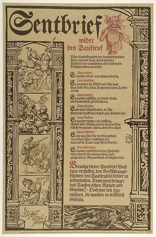 Nachdem mit der Bundesverfassung von 1874 die Handels- und Gewerbefreiheit bundesweit eingeführt wurde und damit vorher bestehende Beschränkungen und Besteuerungen der Alkoholherstellung bzw. des Alkoholverkaufs und -ausschanks wegfielen, stieg der Konsum rapide an. Insbesondere diente Kartoffelschnaps bei den ärmeren Schichten als Betäubungsmittel und Nahrungsersatz. Um dieser Kartoffelschnapspest zu begegnen, wurde 1887 das erste Alkoholgesetz verabschiedet, das vorerst nur die Produktion von Kartoffelschnaps regelte. Der Alkoholkonsum ging daraufhin auch massiv zurück.[7] Nachdem im Ersten Weltkrieg und in der Zeit danach Obstbrände zunehmend an Beliebtheit gewannen und der Alkoholkonsum wieder zu steigen begann, wurde die Alkoholbesteuerung 1930 auf Verfassungsebene und 1932 im Bundesgesetz über gebrannte Wasser (Alkoholgesetz) eingeführt. Im Jahr 2004 wurde mit einer Sonderregelung für Alkopops die Alkoholsteuer auf diese süßen Mixgetränke mehr als vervierfacht.