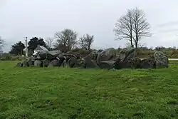 Das Südost-Nordwest orientierte Galeriegrab aus Dolerit ist eines der ersten Denkmäler, die durch den französischen Staat geschützt wurden. Die etwa 16,0 m lange Megalithanlage besteht aus 28 Tragsteinen (14 in situ) und acht Deckenplatten. Sie wurde 1854 von Jules Henri Geslin de Bourgogne (1812–1877) ausgegraben. Gefunden wurden eine Urne mit Knochen, Äxte, Perlen, Werkzeuge aus Feuerstein und verschiedene Bronzen. Gallo-römische Überreste zeigen, dass das Denkmal wiederverwendet wurde.
