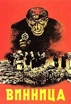 Gerhard Paul erinnert das Plakat darüber hinaus auch an ein nationalsozialistisches Propagandaplakat aus dem Jahr 1943, das das Massaker von Winnyzja als jüdisch-kommunistisches Verbrechen darstellt. Darauf ist über dem Foto der exhumierten Leichen ein Mann zu sehen, der mit einem Revolver direkt auf den Betrachter zielt. Er trägt eine Mütze mit rotem Stern und hat die in der NS-Propaganda typischen „jüdischen Gesichtszüge“.[5]