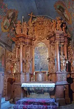 Die gotische Kirche wurde im 15. Jahrhundert gebaut und gegen Mitte des 16. Jahrhunderts erneuert. Im 17. Jahrhundert wurde sie im Stil der Renaissance umgebaut. Es handelt sich um einen Blockbau mit einem rechteckigen Raum, Presbyterium und einer gemalten Renaissance-Kassettendecke im Inneren und einem hohen Schindeldach mit einem kleinen, schlanken Turm. Die Dominante der Kirche ist ein barocker Altar mit Plastiken aus der ersten Hälfte des 18. Jahrhunderts. Die Kanzel mit Plastiken von Evangelisten stammt aus dem Jahr 1654. Aus dem ursprünglichen gotischen Altar befindet sich in der Kirche nur ein Flügel mit Fragmenten von Gemälden des Apostels Petrus und Johannes des Täufers aus dem frühen 16. Jahrhundert, das mittige Gemälde Beweinung Christi ist heute in einem Museum in Budapest ausgestellt.