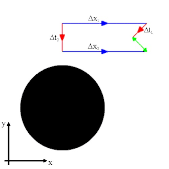 Ein Paralleltransport ist eine Verschiebung in einer Richtung, bei der die Ausrichtung des zu Verschiebenden beibehalten wird, also ein lokales Koordinatensystem mitgeführt wird. Eine bloße Verschiebung in einer Raumrichtung ist in einer Raumzeit ohne Massen anschaulich verständlich. Die Definition der Zeit ist nach der speziellen Relativitätstheorie von der Bewegung des Koordinatensystems abhängig. Eine konstante Zeitrichtung ist dabei nur für unbeschleunigte Koordinatensysteme gegeben. In diesem Fall bedeutet eine Verschiebung in Zeitrichtung in einer Raumzeit ohne Massen, dass ein Gegenstand relativ zum Koordinatensystem ruht. Er bewegt sich dann entlang der Zeitachse dieses Koordinatensystems. (Verglichen werden die unbewegten Anfangs- und Endzustände.)