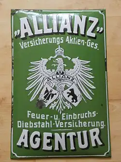 - ↑ Geschäftsanzeigen. In: Berliner Adreßbuch, 1890, nach Teil 1, S. 3 (Allianz mit ihren Einzelangeboten, Grundkapital usw.).