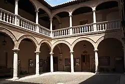 Das Gebäude ist aus Bruchstein und Ziegel errichtet. Den quadratischen Innenhof umgeben zweistöckige Galerien im Stil der Renaissance. Im Erdgeschoss sind die Arkaden rundbogig, im Obergeschoss korbbogig. Auf beiden Stockwerken ruhen sie auf Steinsäulen mit toskanischen Kapitellen. Eine Steinbalustrade umläuft das obere Stockwerk.
