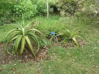 Aloe macra ist auf Réunion auf trockenen Hügeln verbreitet.